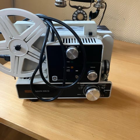 Vintage båndopptaker fra 50-tallet(?). Inkludert 6 bånd. Ukjent kvalitet. Virket da det ble satt på loftet på 80-tallet.
