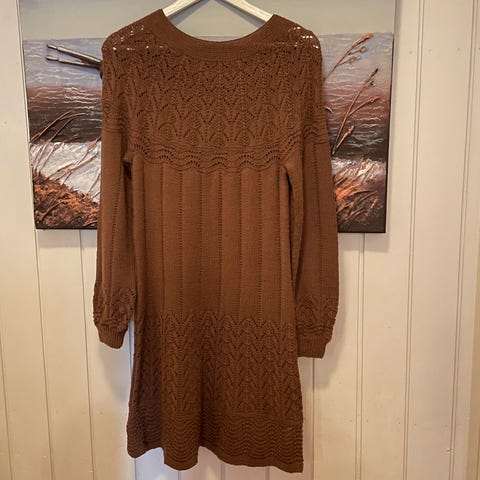 Sååå fin turkis lang kjole ❤️håndstrikket. For størrelse M. De 2 første bildene er tatt på kvelden og de siste er tatt i sollys.