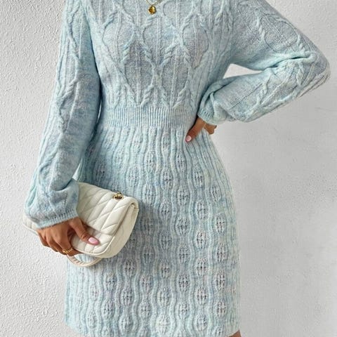 Strikket, turkis, kjole, dress, handmade, unik, kunst.