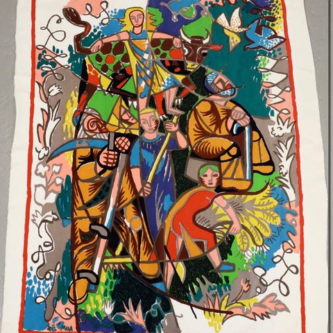 Her har du et karakteristisk bilde på stoff. Det gjør seg godt om du fester det opp på en tynn plate. Da ofte best uten noen ekstra ramme rundt. Da får du et koseligere hjem!