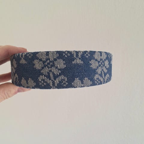 Bunadshårbøyle håndsydd av det orginale livstoffet til trønderbunaden, i møsteret rose med bølge. Hårbøylen måler 4 cm på det bredeste og har fløyel på baksiden. Passer ungdom og voksen.