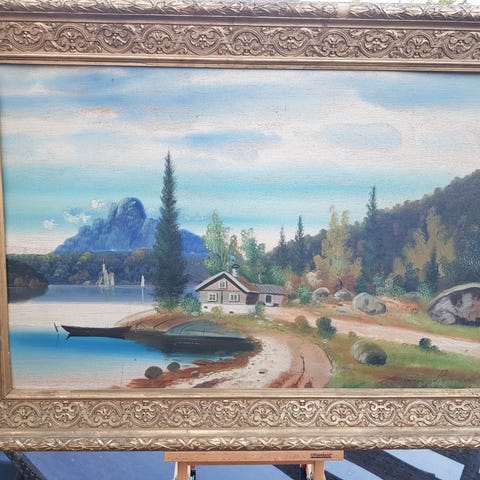 Bredde 61 cm. x høyde 53 cm. Frakt 70,-