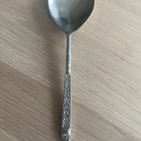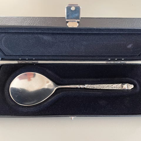 Bryllupskje, grøtskje i tinn fra Askvoll
