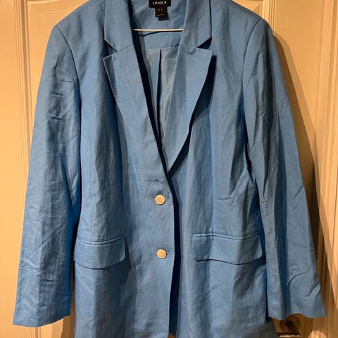 Pen blazer i marine farge str L-XL, fra GODSKE, pen mønster i stoffet, lengde 64cm, brystvidde 60cm