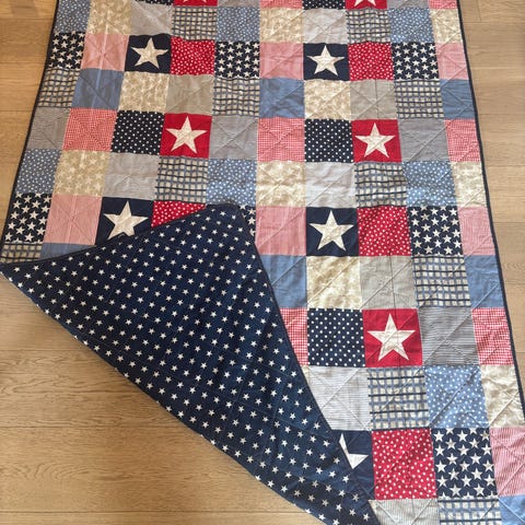 Fint sengeteppe til barn som ble for lite da frøkna byttet seng. Kjempefint
