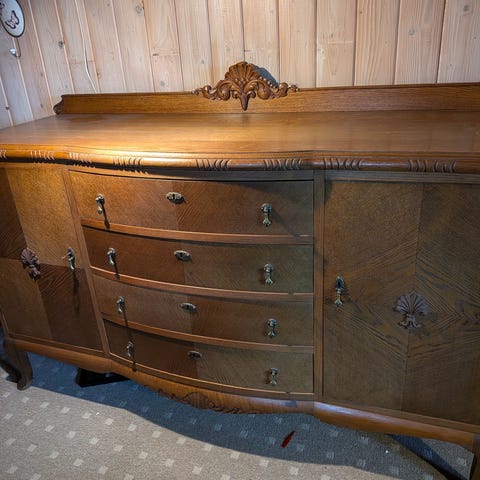 Pen klassisk pseudo-rokko skap med 2 skuffer umed fin pantina antatt fra siste del av 1800 tallet.