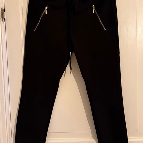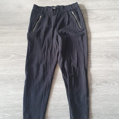 Bukse fra Culture i lett og behagelig kvalitet. 2 stikklommer i front, 95% polyester, 5% elastane. Bakside, 65% polyamide, 30%rayon, 5% elastane. 4 cm linning med strikk i livet. Innerbenslengde ca 72 cm. Buksen har en mørk grå stripe i sidene. Kjempefin og behagelig på.