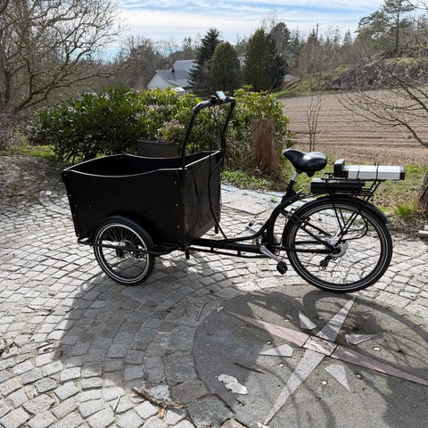Veldig koselig å sykle på, med barna nærme. ( Vi har hatt bilsete stropper fast oppi kassa med ganske små barn. )Man kan snakke sammen og lett stoppe å se på ting på veien- mange hyggelige stunder med sånn sykkel ❤️