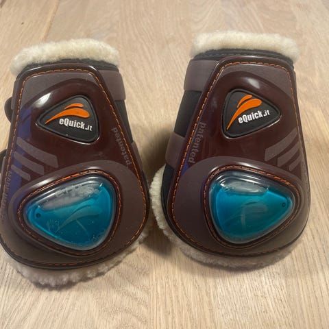 Svarte Veredus TRC vento, save the sheep. Både fram og bakbeinsbelegg. Begge størrelse full. Normal bruksslitasje, men ellers helt fine. Beleggene blir rengjort for hår og vasket før salg. Selges samlet for 1100kr.