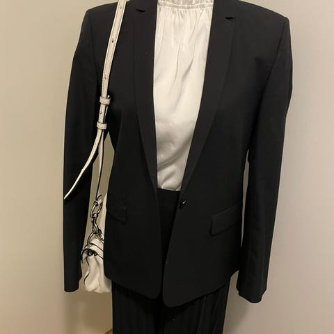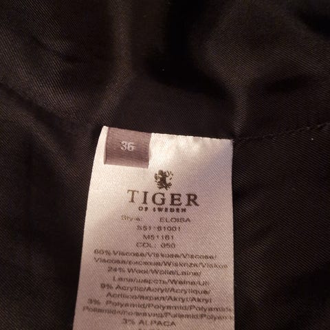Trykk knappen for lukking av kjolen er dessverre borte, men lett å sy på. Kan også brukes som lang blazer.