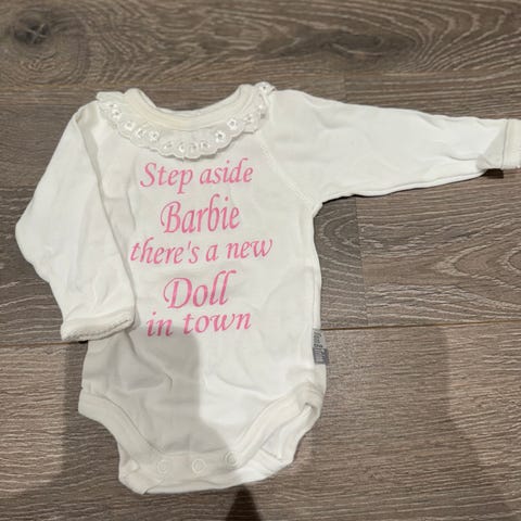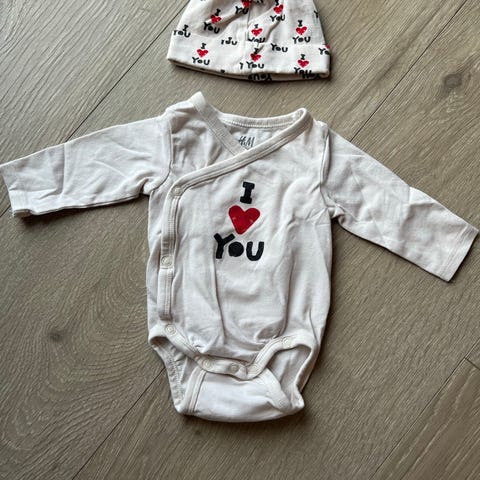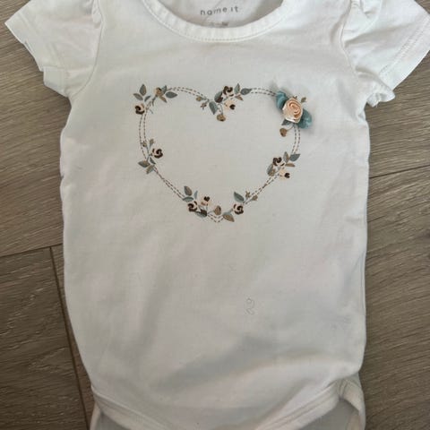 Hvit body fra H&M str. 50. Knepping sånn at man slipper å tre body over hodet.