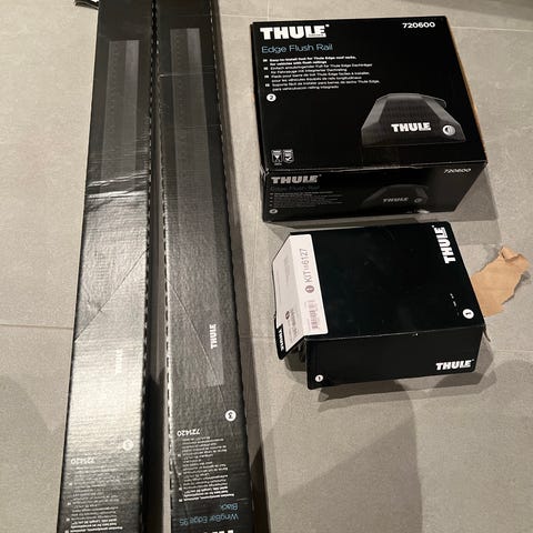 Selger et brukt Thule WingBar takstativ som passer til Volvo EX40. Thule fitkittet må kjøpes utenom: Thule Kit 186010