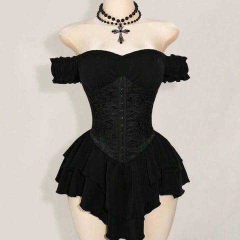 Selger denne svarte kjolen med knyting rundt halsen i str. M (passer også str. S) og i str. L (passer også M). Aldri brukt. 150kr pr stk.