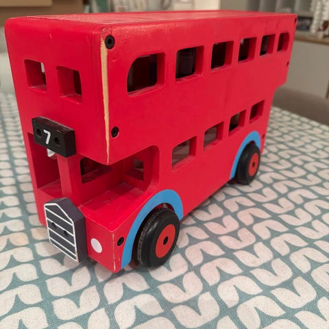 Dobbeldekker buss leke /lekebil turkis (hentes/sendes)