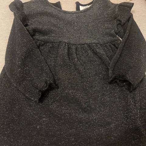 Lett kjole i tynt stoff. Mørkeblå med hvite detaljer. Utoversving i fasongen, behagelig for aktive jenter.