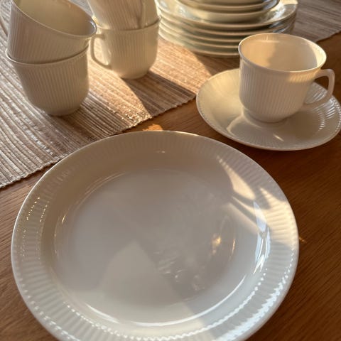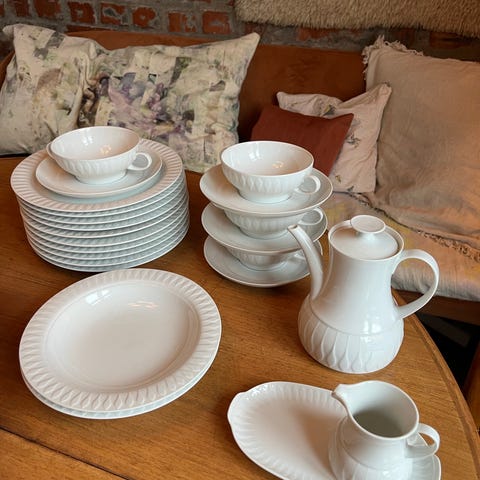 Består av 5 tallerkener og 6 kopper med skål.