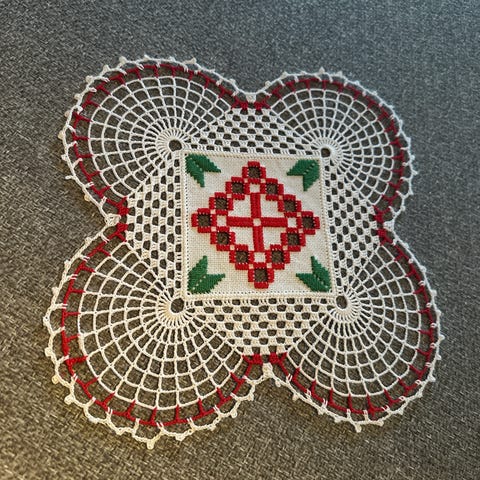 Pyntehånkle. , liten duk og løper