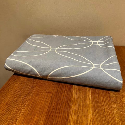 Lyseblått og hvitt mønstret/lyseblått på baksiden.