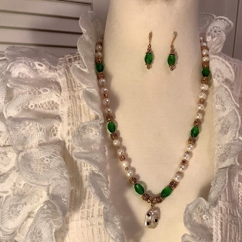 Håndlaget smykkesett: halskjede+ ørepynt.