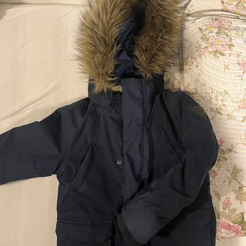 Jakka ser fin ut men selges rimelig pga et reparert hull på foret (tekstil lapp). Dette er ikke synlig når jakken er på og jakken er ellers hel og fin. Skrev derfor "pent brukt" . Nypris 4500.