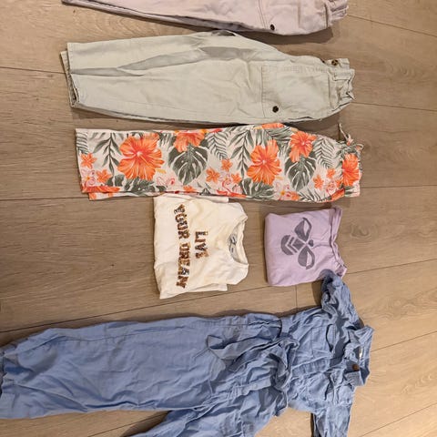 Superfint sammen, bukse, tynn genser med blondedetaljer og nydelig teddyfleecegenser!