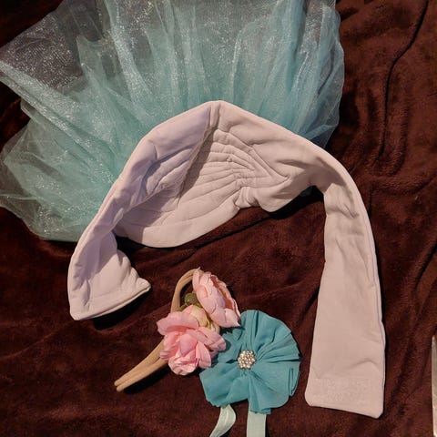 Mintgrønt tyllskjørt med matchende hodepynt. Lengde skjørt 20 cm. Legges dobbelt over nurket.
