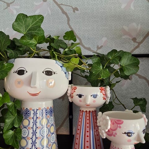 Vasen er ca. 13 cm høy, 7 cm bred ved åpningen og 12 cm bred på det bredeste.