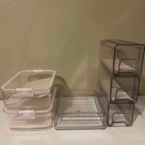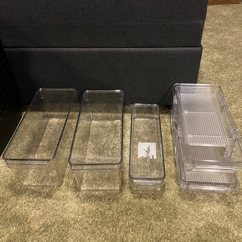 Plastbokser for oppbevaring. Passer til alt fra høstløk til skruer, kontorutstyr og andre små ting som ikke har en dedikert plass hjemme eller i boden. Kan brukes som mini drivhus.