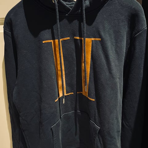 Selger en hettegenser fra franske Le Deux. Rød farge, litt lysere rødfarge enn julerød. Liten fargeforskjell midt foran se bilde. Hel og pen. Str M herre.