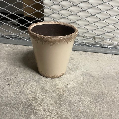 Oppbevaringsboks i kraftig porselen m/tett lokk selges for kr. 75,-