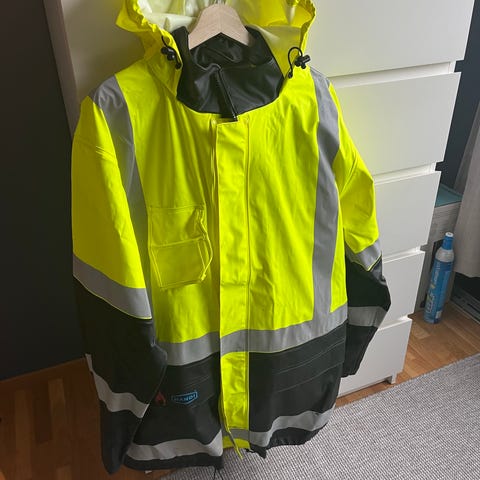 Etter at jeg kjøpte dette regntøysettet, fikk jeg et nytt i gave. Derfor ligger de i skapet, og de ser fortsatt helt nye ut. De har en verdi på 80 kr fra Stormberg-butikken (som vist på bildet henholdsvis 40kr på jakke og bukse) Klærne ser noe krøllete ut fordi de har vært i skapet hele tida. men hvis de henges på en kleshenger en stund, vil de se flotte ut. Den opprinnelige prisen er over 700 kr, husk ikke presis pris.