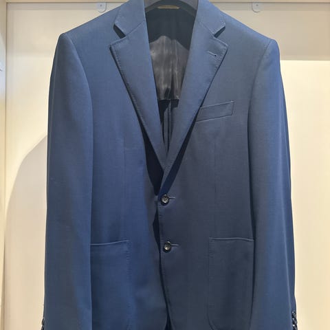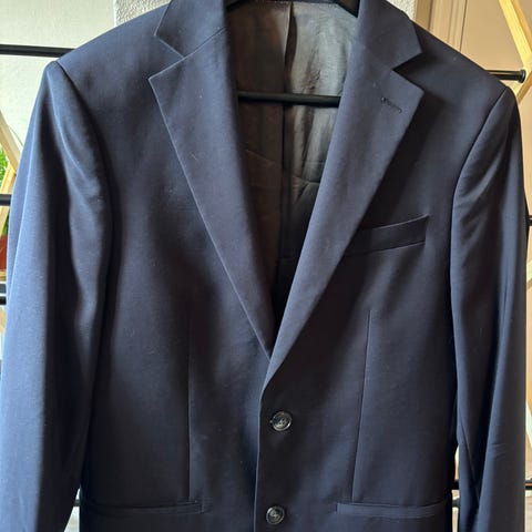 Dressen er strl 42 og har en veldig fin form når tatt på seg. Dressen ble kun brukt på et dåp og en konfirmasjon. Så dette er en så si ny dress.