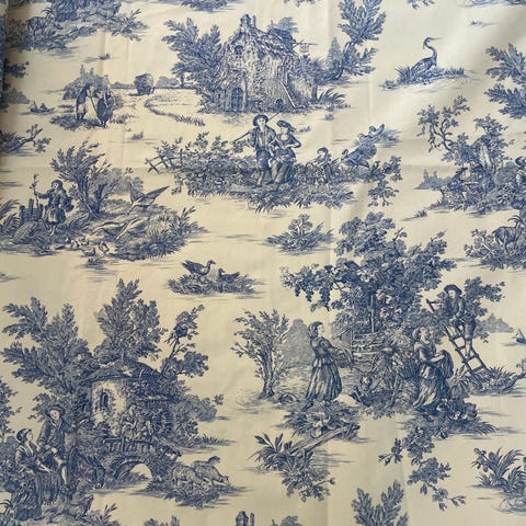 "The Constitution", "The Tea Clipper", Robert Fultons "Clermont", et vikinglangskip og "Halvmånen" er vakkert gjengitt på dette middels tunge lerretslignende bomullsstoffet.