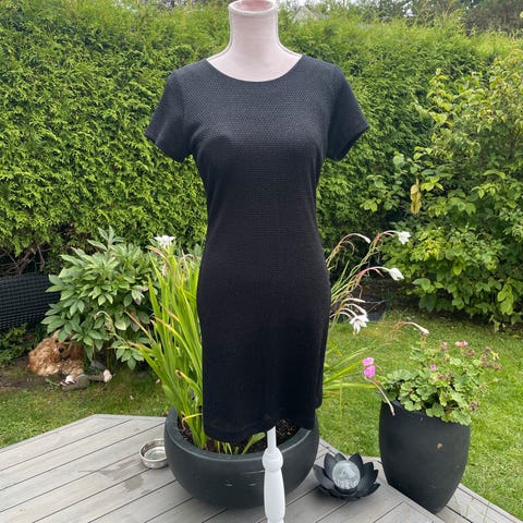 Klassisk og fin. Sort kjole til knærne med trekvart arm. Sømdetaljer foran som gjør at kroppen formes.