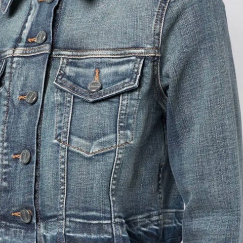 Revamped Denim jakke med offwhite Chiffon i rygg og i front på den ene siden.