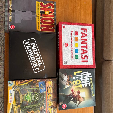 Forskjellige brettspill - både ny og brukt selges. Pris varierer. Si fra hvilken du er interessert i så kan vi diskutere prisen.