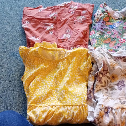 Genseren med stemorsblomster er SOLGT. Lite brukte, som nye. Fra røyk og dyrefritt hjem. Kan hentes eller sendes.