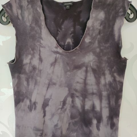 Lekker silketopp i 100% silke fra Joseph str M. Sort med striper, transparent stoff. Superlekker!!