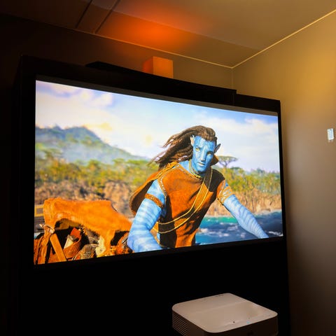 Pent brukt prosjektor lerret til ust ultrashort prosjektor på 100 tommer selges rimelig. Måler 224 cm i bredden og 126cm i lengden. Svart kant i stoff rundt lerret. Følger med oppheng.