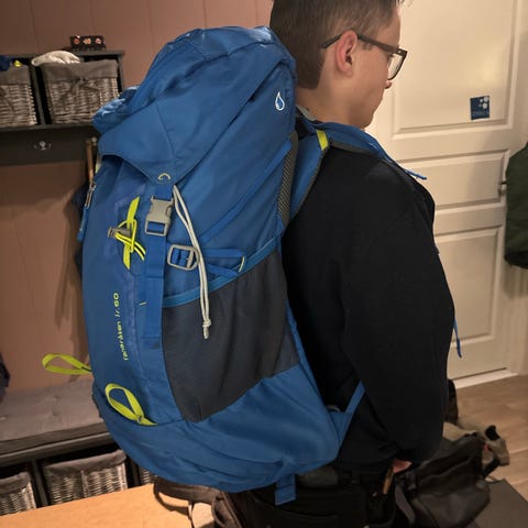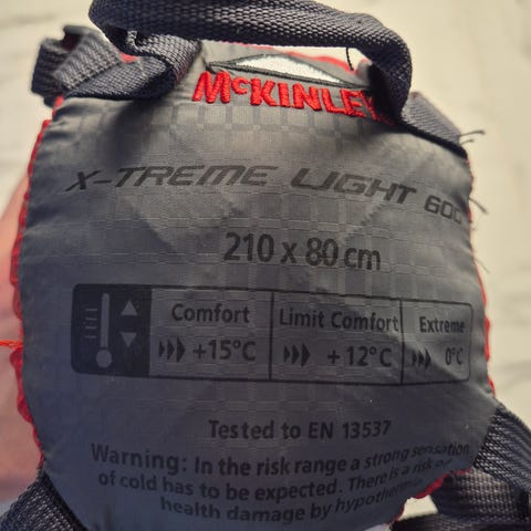 Fin sovepose fra McKinley. Brukt kun 1 gang. Ca. 200 cm. lang. Traveller light 800.