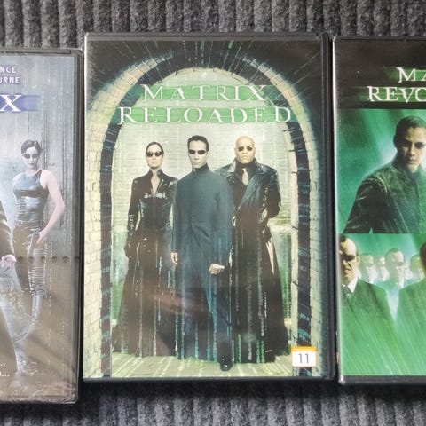 Første 3 Matrix filmene, i et cover.