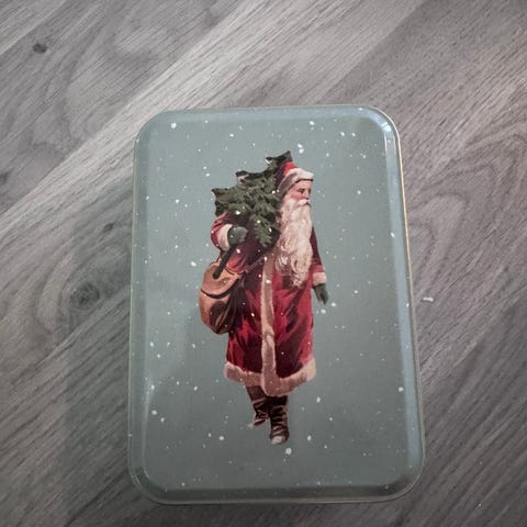 Ny juleboks selges. Metall.