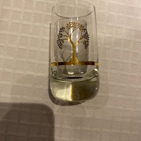 4 Snapsglass med sort «kunstmønsger, sort stertfot med litt gull i