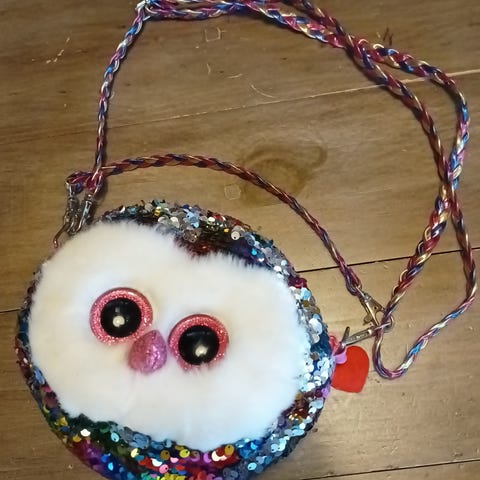 Ugle barneveske med perler og paljetter i rosa, sølv og hvit