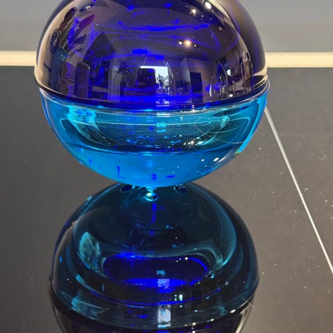 Har 3 stk. 2 bjeller, og en kule. De ligger i original eske, og er ikke synlig brukt. De er i fargen Gjøvikblå. Selges for 250,- pr stk. jeg sender mot porto.