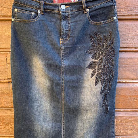 Stilig lang skjorte med paljetter i stolpe, på skuldre og brystlomme.
