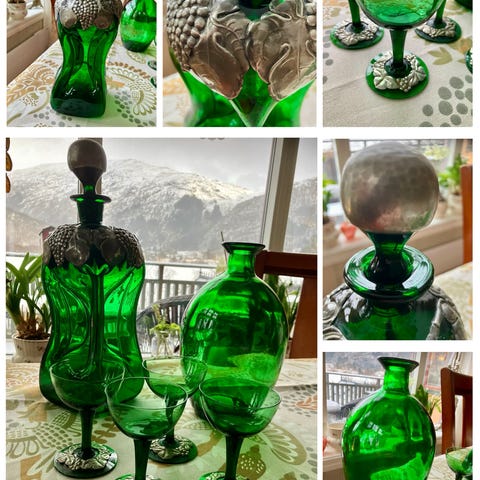 karaffel formet som fugl med 5 stk glass og fat . Designet av Thure Berglund .
