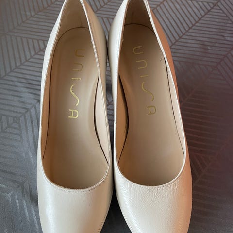 Hvite skoene i ekte skinn. Norm. i størrelse.