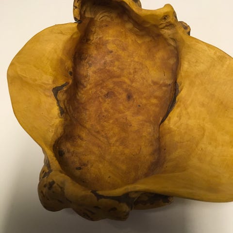 Fin og dekorativ treknute, kåte eller rikule. Denne er fra en stor arvet samling og jeg selger et utvalg av dem. Den er 30 cm bred liggende og 17 cm på det høyeste punktet. Den er 44 cm i omkrets. Det ligger ved et bilde med noe dekor som eksempel. Den kan ligge og stå både opp og ned og er like fin uansett.