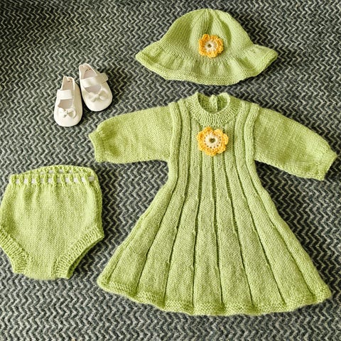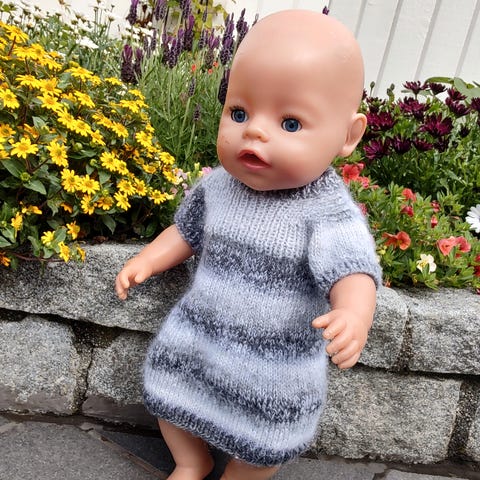 Kjole,truse, hatt og sko til Babyborn 43cm. Strikket I Viking babygarn I ull.Selges for kr.370. - + porto.